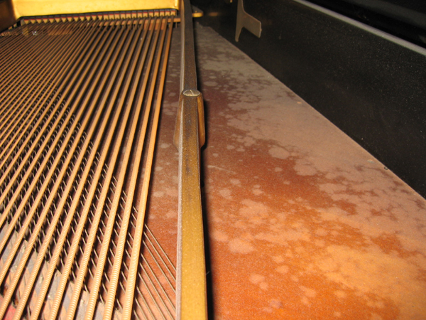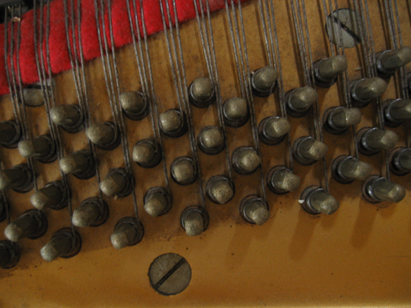 弦とチューニングピンを外した写真 |